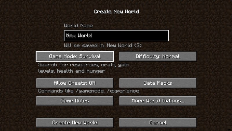 すでにワールドを作成している場合、チートを有効にすることはできません。このオプションは、シングル プレイヤーでワールドを作成する場合にのみ使用できます。