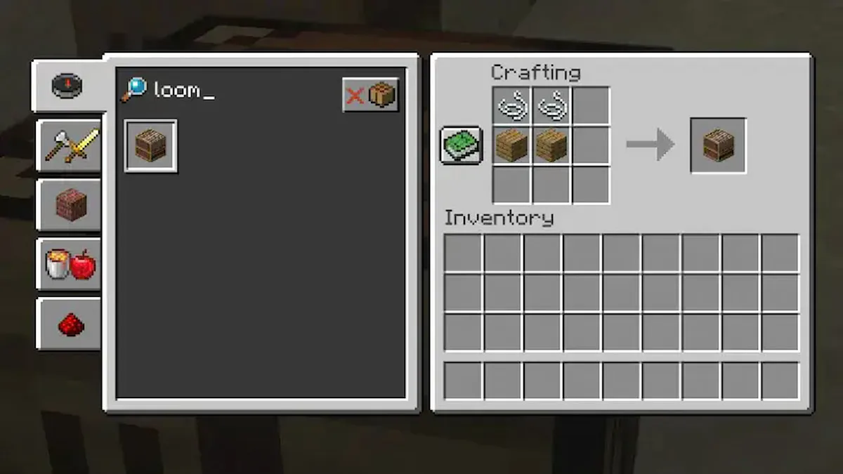 織機の使用 2 枚の木製の板と 2 本の紐で作られたこのバナーは、さまざまなデザインでさらにカスタマイズできます。これを行うには、バナーを Loom メニューに配置し、任意の色の染料を追加してプリセット デザインを追加します。各ピースには独自の名前があるため、特定のデザインのガイドに従うことは、それらの装飾の名前を使用することで簡単になります. 1 つのデザインを選択してバナーに印刷したら、別のデザインを追加して別の色にしたり、文字、顔、さらには Mojang のロゴを作成したりできます。