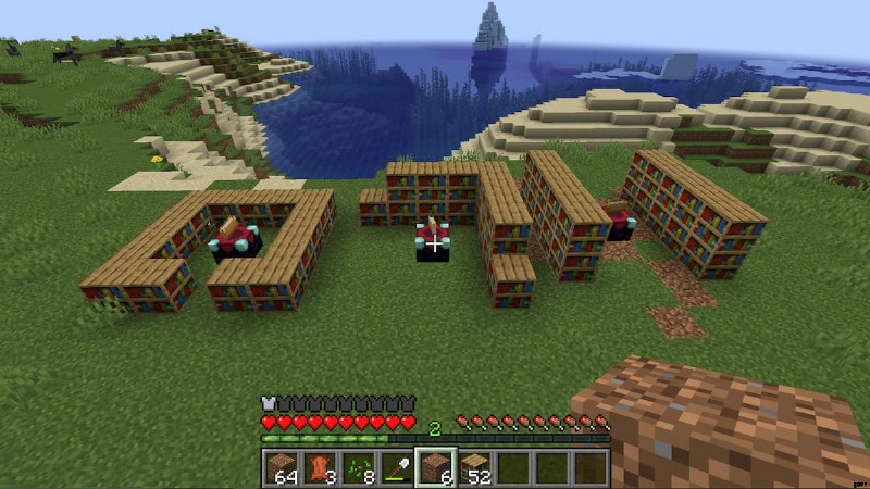 魅力的な部屋を作るには、魅力的なテーブルを本棚ブロックで囲み、間に 1 ブロックのスペースを残します。繰り返しますが、最大レベルのエンチャントを取得するには 15 が必要です。