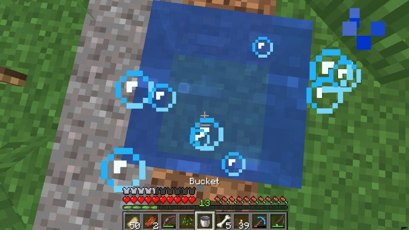 水バケツクラッチを行うには、まずホットバーに水バケツが装備されていることを確認してください。高い所から落ちる時は素早くウォーターバケツに切り替え、下を向いて特定のブロックを狙う。使用ボタンをスパムクリックして水を配置します。地面に着く前に水を置くことを目指しています。