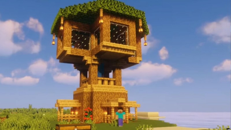 Lex The Builder は、見た目が美しく、実用的で、簡単に建てられるツリーハウスを設計しました。初心者のプレイヤーは、大きな広々とした窓のあるオープンフロアプランを作成するためのチュートリアルに従うことに問題はありません.この家は見張り塔としても機能します。