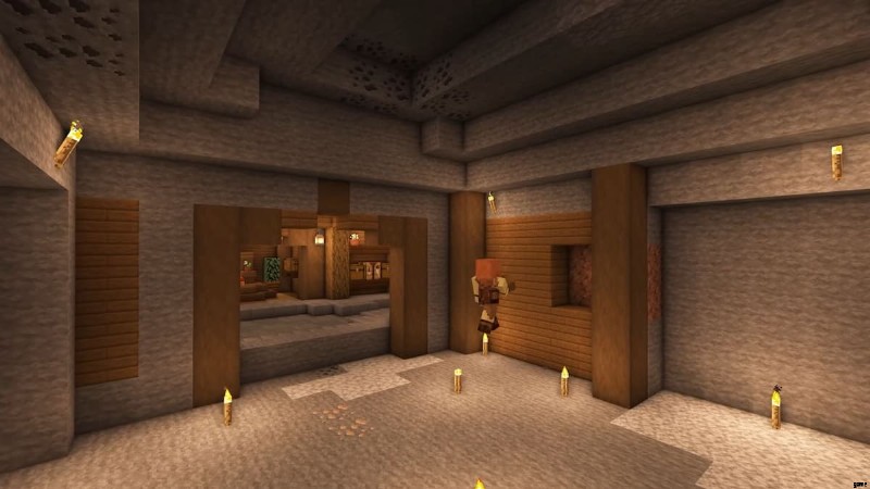 この秘密の地下基地は、Minecraft のプレイヤーが要求できるすべてのプライバシーを提供すると同時に、内部でできることもたくさん提供します。図書室、キッチン、ベッドルーム、さらにはメインルームの中央にある農業スペースをお楽しみください。また、竹の仕切りや素朴な玄関など、オプションですがファッショナブルな装飾も備えています。