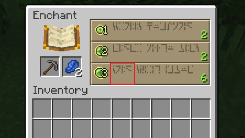 前述のように、エンチャンティング テーブルの文章は、チャートを使用してわかりやすい英語に変換することで読むことができます。何よりもまず、F2 を使用してテーブルのスクリーンショットを撮ります (Java Edition のみ) またはデフォルトの Windows + スクリーン印刷。 スクリーンショットの文章を下の表と比較し、文字ごとに翻訳してください。