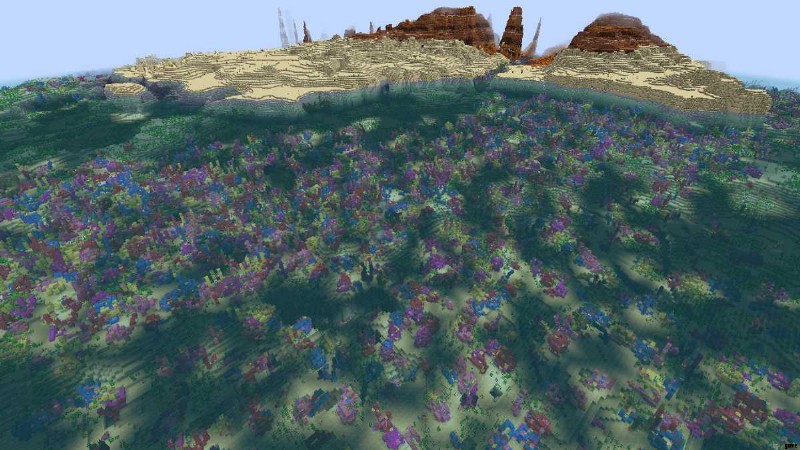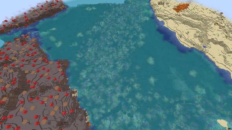 このシードは、いくつかの村に囲まれた控えめなコーラル リーフの海岸線の隣から始まります。つまり、村が提供する資源や社会的交流をあきらめずに自然の美しさを楽しみたいプレイヤーにとっては素晴らしいスタートです。湖の奥深くまで進むと、肉眼 (およびチャンク レンダリング) で見渡す限りの巨大なサンゴ礁が見えます!