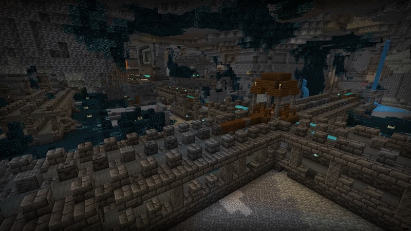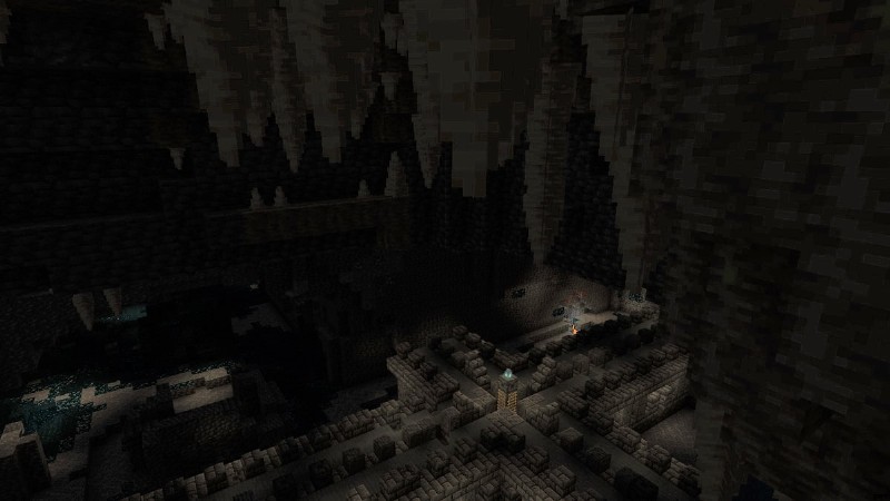 ドリップストーンシティは、すでに恐ろしい場所にさらに威嚇的な雰囲気を与えるドリップストーンの洞窟と交差する古代都市です.雪に覆われた一連の巨大なバイオーム、雪に覆われた森、平野、そして最後に山に囲まれ、覆われています。エンシェント シティは、広大な山脈の 1 つの頂上の下にあります。
