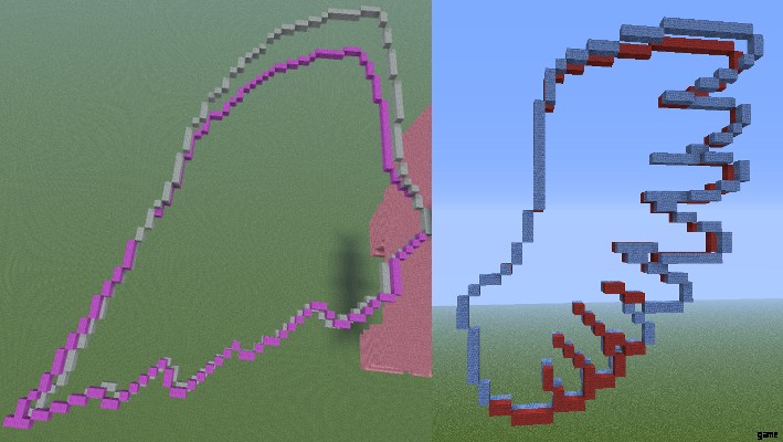 2 ブロックの長さのレイヤーを使用すると、翼の一部の部分が正しく見えないため、1 ブロックのレイヤーを 2 つ使用し、そのたびに 1 ブロック深くします。
