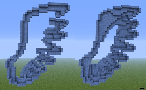 既存の翼のデザインをコピーするだけです。もちろん、これは 2D 画像に対してのみ機能しますが、それがまさに私たちが求めているものです。翼の画像、できればピクセル アートの翼を Google で検索してください。 Pokemon などのプログラムには、非常に単純化されたピクセル バージョンが用意されていることが多く、非常に簡単にコピーできます。下の画像に示すように、Minecraft で各ピクセルをブロックに置き換えてこれらのピクセルをコピーするため、クリア ピクセルのある画像を見つけてください。