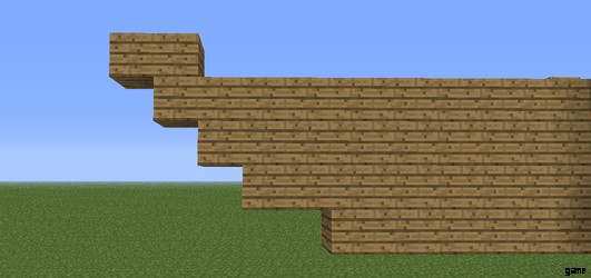 装飾品は難しそうに見えるかもしれませんが、作るのはとても簡単です。ほぼ全体が階段と木の板でできており、上部のスラブは 2 つだけです。各ブロックが配置されている場所がわかりにくい場合は、下の画像をクリックして、各ブロックを明確に示す画像に移動してください。