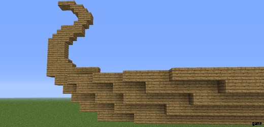 船体は非常に簡単です。特に、船首や船尾を最初に作成した場合は、希望の長さに伸ばすだけです。バイキング船の船体は一般的に非常に平らで幅が広いですが、甲板の下のスペースを収納スペースとして、またはおそらく寝室として使用することも必要でした.そのため、船底は甲板から少なくとも 2 ブロック下にある必要がありました。つまり、十分に見えるデザインは 1 つしかありませんでした。
