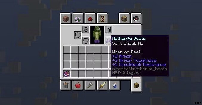 それだけでは不十分な場合は、この場所だけの戦利品を見つけることもできます. Swift Sneak エンチャントを見つけることができます エンシェントシティのチェストの1つ。これはレギンスの最初のエンチャントです .名前が示すように、より速く走るのに役立ちます。 – これは非常に役に立ち、多くの時間を節約できます。さらに、レベル 3 までレベルアップすることもできます その効果をより強力にするために。