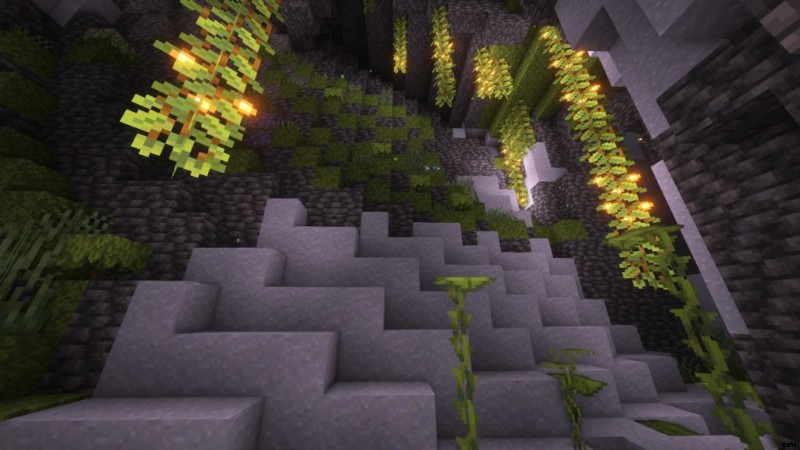 ここは、粘土が大量に採れる最高の場所として知られています。緑がかったつる植物とグローベリーからの暗い光により、このタイプの洞窟では粘土を簡単に見つけることができ、敵対的な Mob も少なくなります。