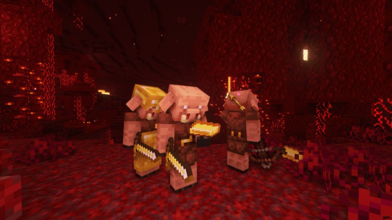 十分に歩き回ると、ピグリンがスポーンすることに気付くでしょう。それらに近づき、ガスト、マグマ キューブ、ホグリンなどの他の敵対的 Mob を避けてください。