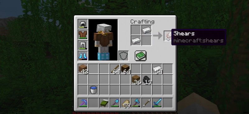 Minecraft でつるを採掘するのは、見つけるのと同じくらい簡単です。つるを見つけたら、それを採掘するにはハサミが必要です。ハサミを持っていない場合は、クラフトで2つの鉄インゴットを組み合わせることでクラフトできます.
