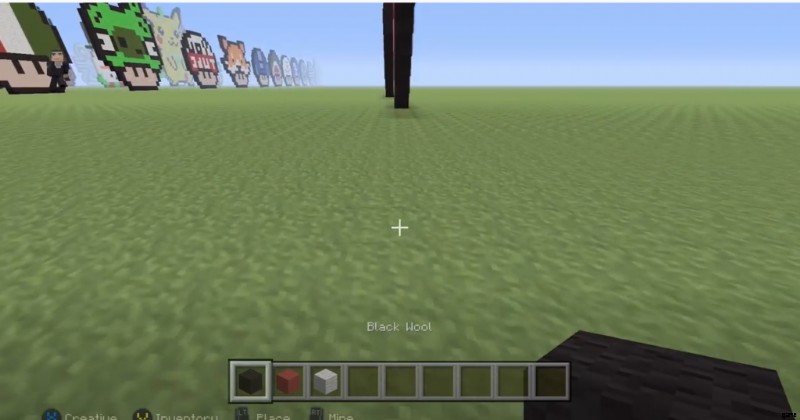 - 次に、2 つの黒い羊毛ブロックを真ん中に置きます。