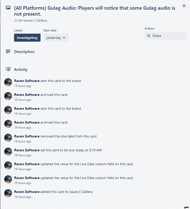 Raven の公式 Trello ボードからの最新情報によると、同社はこの問題を調査していますが、まだ解決策を見つけていません。これらの問題はパブリッシャーとゲーマーの両方にとって有害であるため、開発チームがこの問題をできるだけ早く修正することを願っています.