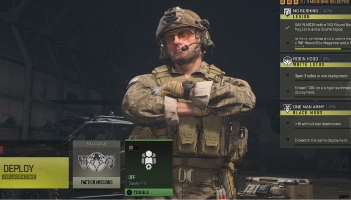 まず、DMZ のメイン メニューに移動します。ミッションを開始する前に、画面の左下隅に [Squad Fill] オプションが表示されます。