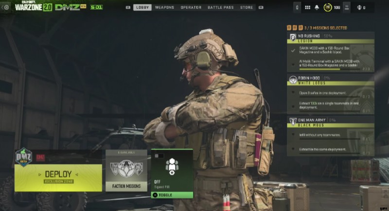 Warzone 2 の DMZ モードでは、プレイヤーは契約、ワールド アクティビティ、派閥ベースのミッションを完了します。あなたの主な目的は、3 つの派閥についてさらに学び、より大きなタスクを完了することです。ゲームの 3 番目の派閥、ブラック マウス 独自のミッションを完了させます。の 1 つは、チームメイトのいない潜入です。 このガイドでは、チームメイトなしで侵入し、Warzone 2 DMZ の同じ展開で抽出する方法について説明します。
