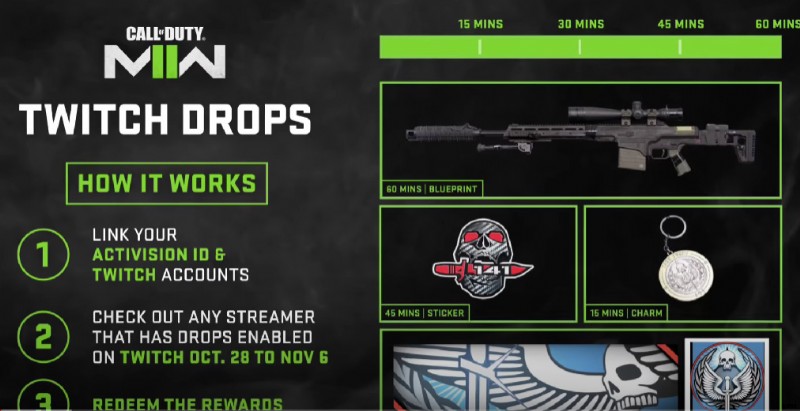 - 10 月 28 日から 11 月 6 日まで、Twitch で Drops を有効にしてモダン・ウォーフェア 2 をプレイするストリーマーを視聴できるようになりました。