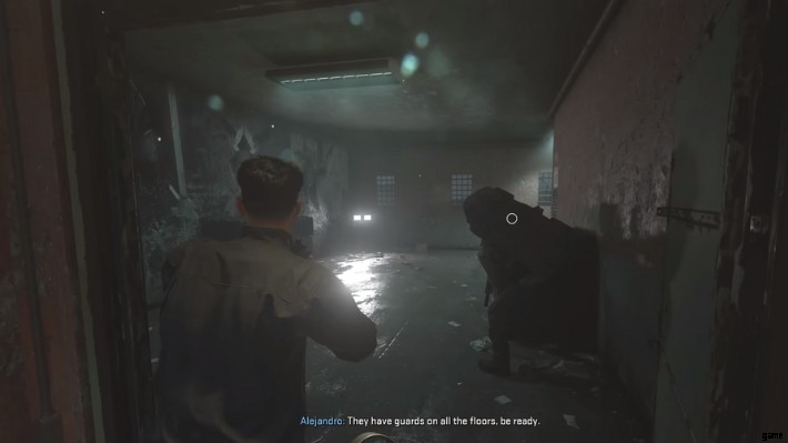 アレハンドロを救出した後、彼とロドルフォが後ろに立ち、前に歩かせている間、バックパックを補充するために使用できる開いたブリーフケースがあります.右折の先には敵が待ち構えています。彼らにフラッシュグレネードを投げて気絶させ、すぐに急降下して近くの地面にある暴動の盾を拾います.その後、後退し、別のフラッシュグレネードを投げて警備員を気絶させてから暴動の盾で攻撃するか、盾を拾った直後にそうすることができます.フロアにはちょうど 3 体の敵がいるため、この実績を一度に完了して移動し続けるのは簡単です。暴動の盾は全力疾走中に落とされるため、これを持って走ることは避けてください。