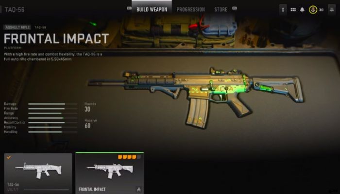 Frontal Impact ブループリントは、プレイヤーに TAQ-56 の代替バージョンを提供します。ただし、MW2 メタではロックを解除できません。 Frontal Impact の設計図は、ゲームのベータ版でのみ入手できます . Modern Warfare 2 のベータ版では、レベル 30 に到達して Frontal Impact ブループリントのロックを解除すると、メタ中に使用できますが、現在ロックを解除する方法はありません。ベータ版が終了し、公式ゲームが公開されたため、ブループリントを入手できなくなりました。