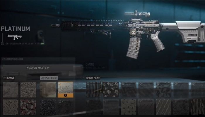 M4 のプラチナ迷彩を入手したい場合は、クラスのすべての武器でゴールド迷彩チャレンジを完了し、ゴールド迷彩を入手する必要があります。武器クラスのすべての武器でゴールド迷彩をアンロックすると、M4 のプラチナ迷彩チャレンジ「M4 で 25 ロングショット キルを達成する」 がアンロックされます。 このチャレンジを完了すると、M4 のプラチナ迷彩がアンロックされます。