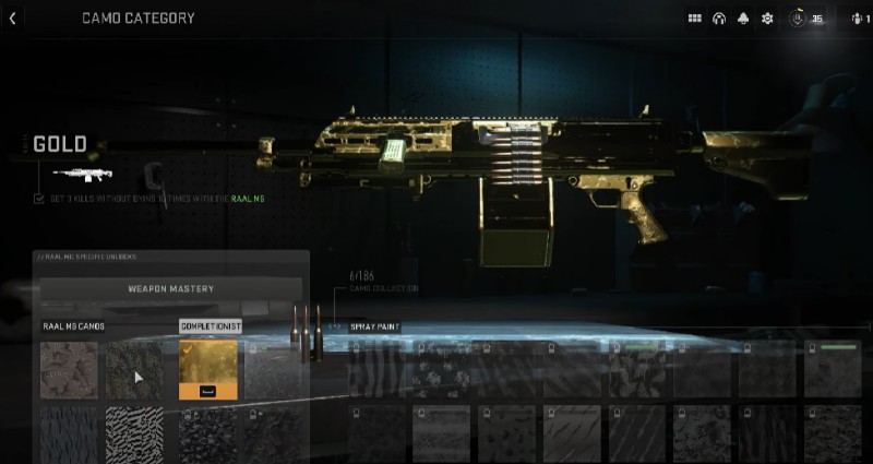 RAAL MG のゴールド迷彩をアンロックするには、死なずに 3 キルを 10 回達成する必要があります。