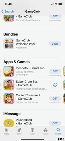 ただし、Apple Arcade ほど滑らかでシームレスではありません。実際にゲームをダウンロードするには、GameClub のホーム画面を数回タップする必要があるため、追加の段階が必要です。その後、実際のダウンロード プロセスのために App Store に移動します。