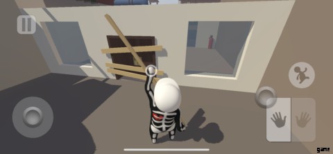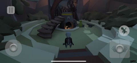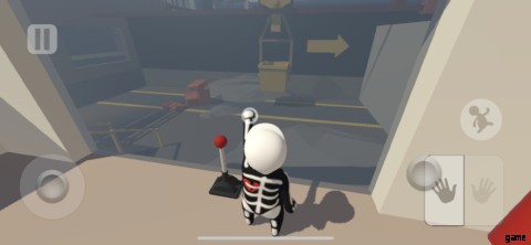ヒューマン フォール フラットの物理スピンは、これらのオブジェクトが移動可能であり、1 つのオブジェクトが別のオブジェクトと相互作用するという事実に由来します。それはまた、小さな顔のないヒューマノイドの両手を制御する能力からも生まれます。これは、(少し難しい場合でも) 本当に満足のいくものです。画面の右下にあるコントロールを使用すると、オブジェクトをつかんだり、ボタンを押したり、アイテムをドラッグしたりできます。左側の仮想ジョイスティックでキャラクターを動かすことができ、おまけにジャンプ ボタンも組み込まれています。
