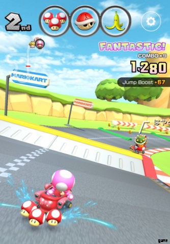ただし、多くの変更を歓迎します。レースは短くなり、外出中に数分を殺すのに最適です。満足のいくコンボ システムは、トラックで行う巧みなアクションごとにポイントを獲得します。マリオカートはポートレート モードで驚くほどうまくプレイでき、すべてを 1 桁で操作できます。
