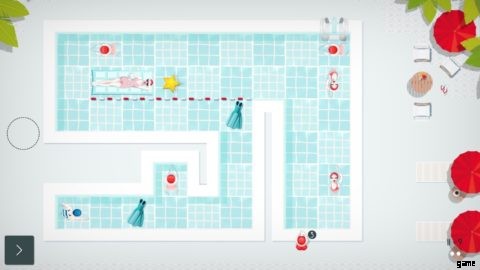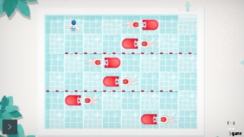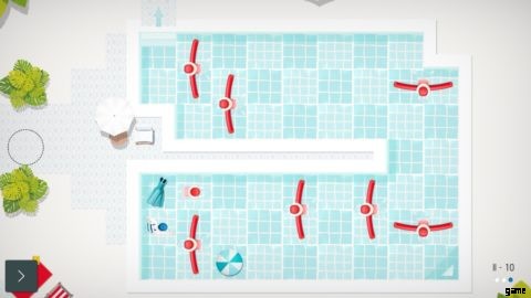 青い帽子をかぶったスイマーをプールの出口のはしごに向けて、一度に 1 タイルずつスワイプする必要があります。あなたの邪魔をするのは、自動化されたルーチンを実行している一握りの赤い帽子のスイマーです.それらのいずれかと衝突すると、すぐに失敗し、プールの最初に戻されます.