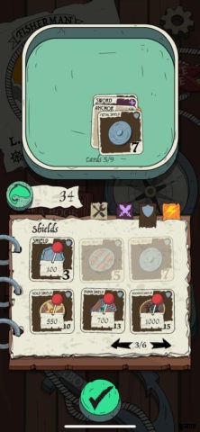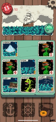 航海をテーマにした各ラウンドでは、積み重ねられたカードの 3 x 3 グリッドが表示されます。タップしてそれぞれを裏返すと、敵のスケルトン、上記の生き物に取り組むための武器、販売のための海の骨董品、または危険な海の遭遇カードに遭遇する可能性があります.