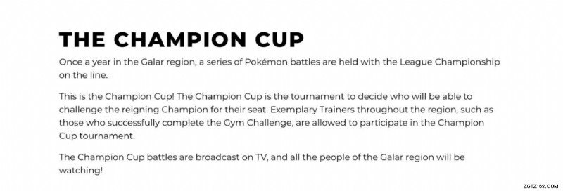プレイヤーが最終的にガラル地域を旅するようになると、ゲームの最後にエリートフォーに直面することはなく、代わりに、チャンピオンカップと呼ばれるアニメのようなトーナメントが彼らを待っています.このイベントは、スポーツ イベントのプレーオフのように行われ、ジム チャレンジを完了したトレーナーのグループが、ガラル チャンピオンのレオンと戦うチャンスを求めて競います。