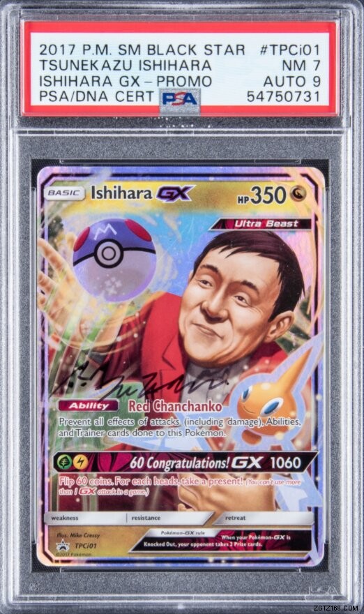 石原の60歳の誕生日を祝うためにポケモン会社の従業員のために最初に印刷されたこのカードは、PSAによって7に評価されただけでした. 2017 年にこのカードが限定生産されたことと、石原自身によって署名されたという事実を考えると、このカードは他に類を見ないコレクターズ アイテムとなり、競争の激しいオークションの引き金となりました。