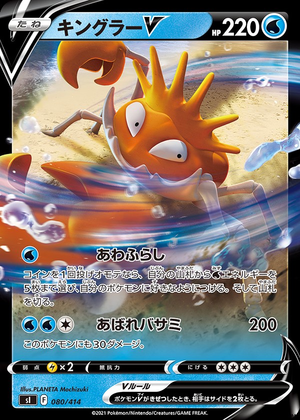 デッキ 081 に登場する 2 枚のカードは、Kingler の新しい V および Vmax バージョンです。このウォーター タイプのデッキは、Kingler VMax のキョダイ シザーズ ムーブで印象的なダメージを与えることができます。
