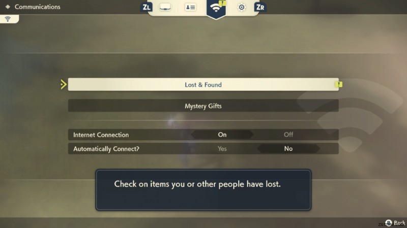 かばんを手に入れたら、Wi-Fi のシンボルに似た [インターネット接続] タブに移動して [遺失物] を選択し、[遺失物] に向かいます。このメニューでは、受け取ったすべてのサッチェルを表示し、現在持っているものを提出できます。