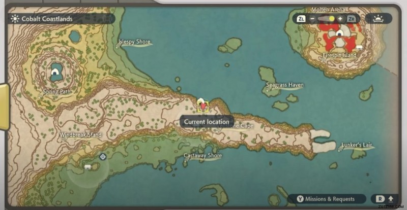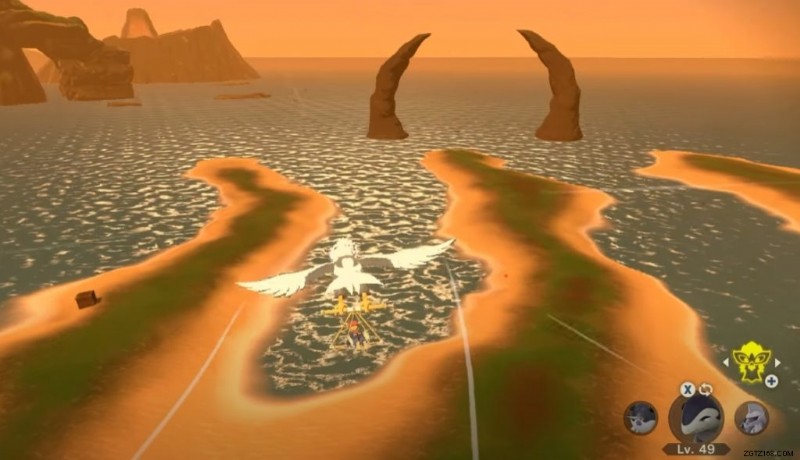 必要なポケモンを 3 匹揃えたら、夕方にランカーの巣近くのコバルト コーストランドに向かいます。ここから、「海の門を通り抜けて、夕日の縞模様の海をボートで出発します」、またはこの場合は、海岸のすぐそばにある大きな編隊に向かっています.