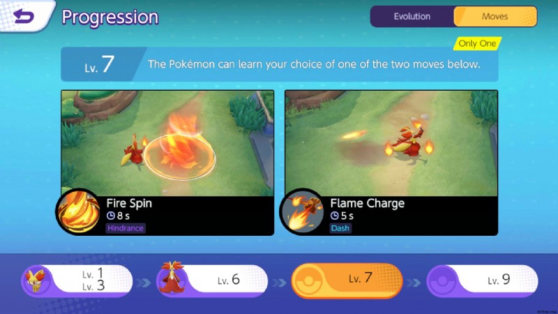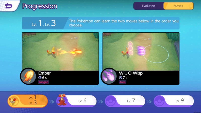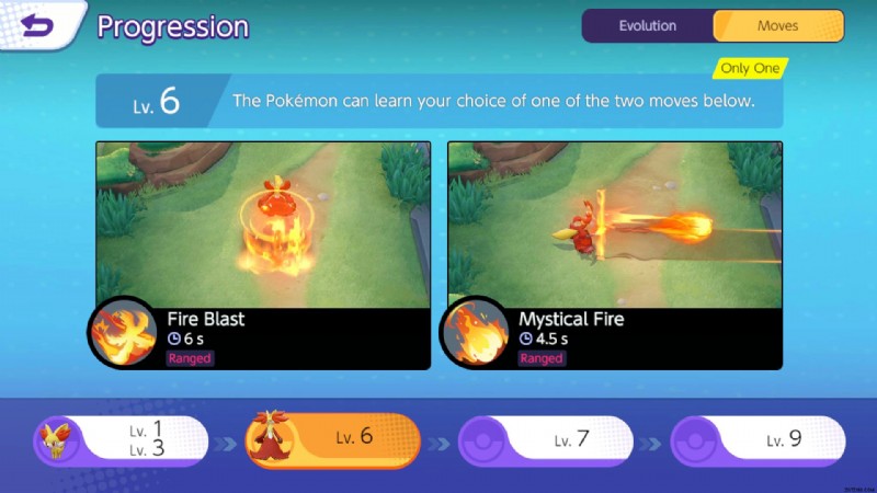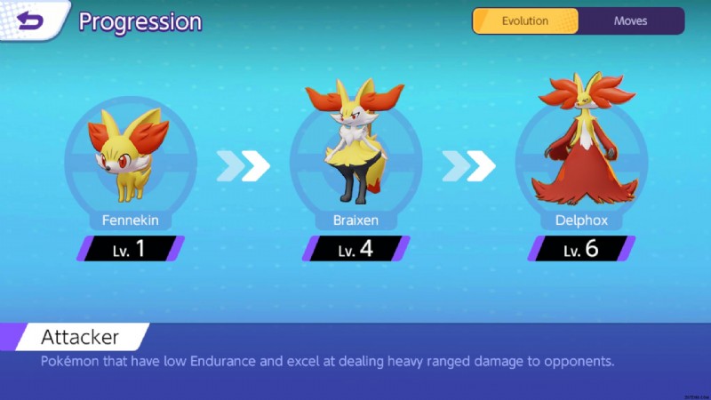 Fennekin として、プレイヤーは最初の動きとして Ember と Will-O-Wisp のどちらかを選択し、Delphox に到達するまで両方を保持し、その後 Fire Blast と Mystical Fire の 2 つの燃えるようなイテレーションから選択します。これらの動きの反復は、リザードンとシルベオンが利用できる対応するものよりも多くのダメージを与えるようです.