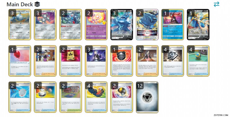 デッキにマグネゾンとメタル ソーサーを追加して、メタル エネルギー カードをオリジン フォルム ディアルガ VSTAR に取り付け、2 回の大規模な攻撃をより速く設定します。