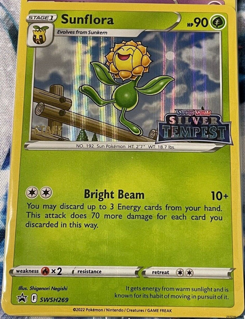 プレリリース セットを構成する 4 枚のカードには、Sunflora、Rapidash、Kirlia、および Archeops がすべてホログラフィック形式で含まれています。これらは PokeBeach によって最初に報告され、サイトによって取得された画像では、Sunflora はスタッフのスタンプで見ることができます.