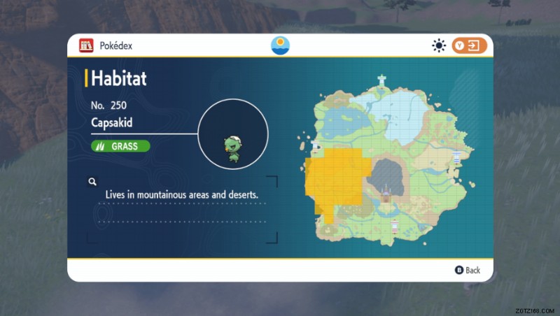 カプサキッドはスパイシーなポケモンです 地図の西側に大まかに見つけることができます。 「山岳地帯や砂漠」にすむくさタイプのポケモン。 Capsakid は Scovillian に進化します。彼らはその名の通り熱く、本質的に熱く、進化プロセスを開始するには、より暖かい側に何かを必要とします.