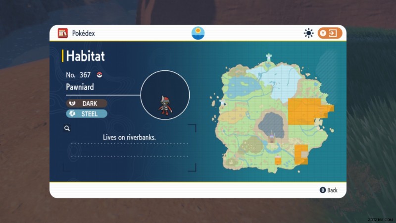 ポーニアードはこの生息地のいくつかのエリアで見つけることができますが、スポーンする場所の 1 つは、下の地図にある川岸にあります。鋼と闇のタイプは、グループでスポーンする可能性もあり、探している性質を持つ標本を捕まえる機会が複数あります。