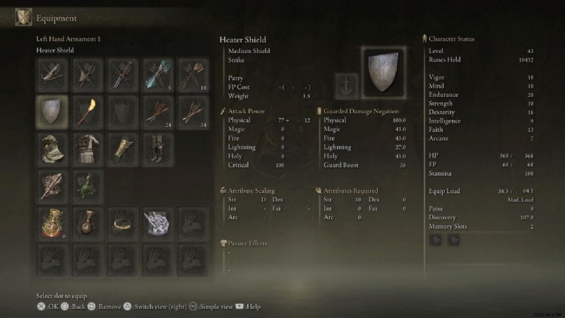 幸いなことに、ゲームで入手する最初のシールドであるヒーターシールドには、その能力があります.アビリティであるにも関わらず、FP を消費しません。代わりにスタミナを消費します。 このアクションにバインドされたボタンは、PlayStation および Xbox コントローラーではそれぞれ L2/LT です。 「スキル」に設定したボタンです。