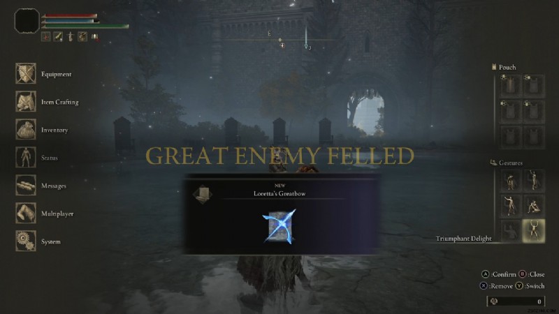 戦闘に参加するときは、これらすべてに注意してください。そうすれば、最後まで生き残ることができます. Co-op は合理的なアプローチとして自然に機能し、彼女のアグロを共有できれば、彼女は簡単に圧倒されてしまいますが、それでもソロではかなり扱いやすいです。彼女を倒すと、強力なロレッタのグレートボウが手に入ります 追加のダメージのために攻撃する前にチャージすることができ、ノックバック効果さえも持つことができるソーサリー.アーティストのシャックからの復活の絵に示されている場所を含む、他の方法では利用できないリウルニアのエリアについては、恵みの場所と北西への出口を確認してください。