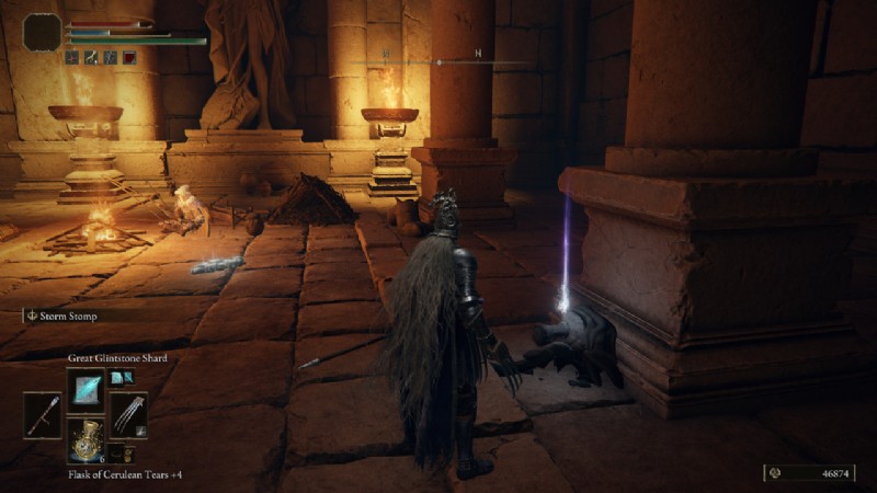 途中のアリは非常に抜け目がなく、待ち伏せするのが好きなので、油断しないと圧倒される危険があります。骸骨が散らばる部屋を通り抜けると、恵みの場所であるウール宮殿と、魔法であなたを攻撃する巨大な敵が見つかります。物陰に隠れて暴徒を避け、商人とマップがある中央の建物にたどり着きます。オーバーワールドとは異なり、これらのエリアにはマップ上にマーカーがありません。これは、フラグメントがポストに残されていないためと考えられます。