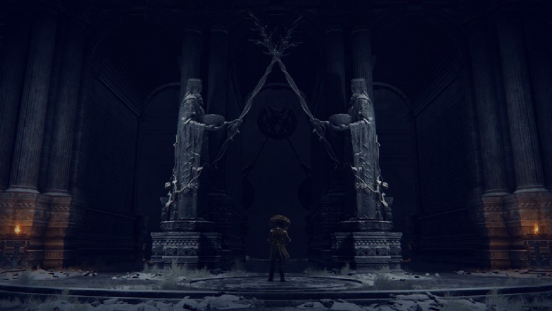 このリフトを上ると、城の郊外に沿って進む必要があり、途中でマウントされた Leyndel Knight を含むいくつかの敵と戦わなければなりません。これらの敵をエレベーターで別の部屋に派遣し、この部屋を降ろすと、寒い気候を反映して環境と効果が変化することに気付くでしょう.近づいているので、禁断の地の恩寵のサイトを有効にしてください。