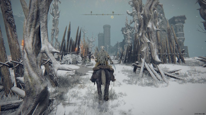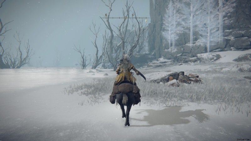 北東に走り、巨人が歩き回っているクリアリングまで進み、左側に傾斜のある隆起したエリアに到達します。凍った湖まで乗ることができます .この先は強風と雪のため視界が失われますので、そのまま南東に進んでください 、途中で現れるドラゴン、ボレアリス、フリージングフォグのすぐそば。トレントにとどまり、ブリザードを通り抜けてマリカ第一教会にたどり着くので、ぜひこの恵みの場所を利用してください。