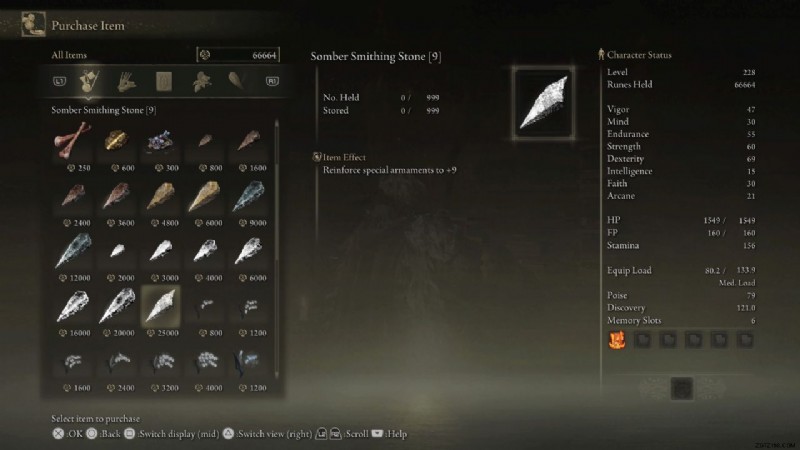 流星獣を倒すと、このキーアイテムを獲得できます。これにより、Somber Smithing Stone レベル 1 および 2 を購入できるようになり、特殊武装を +2 まで強化できます。
