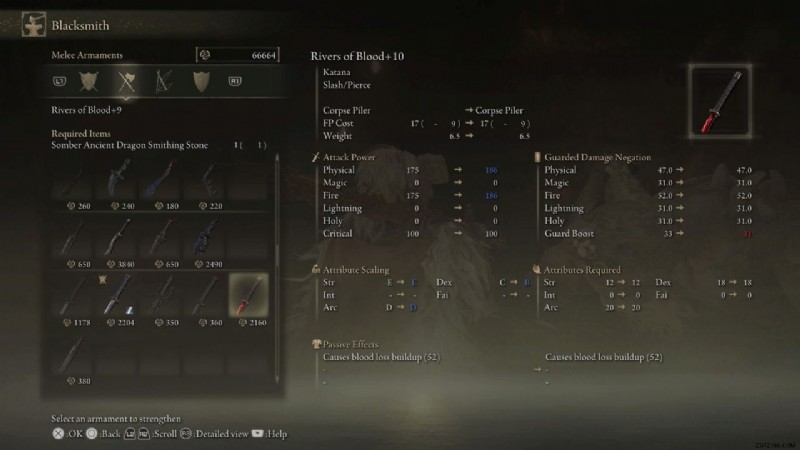 Crystalian のボス (Spear と Ringblade) を倒して、このアイテムを獲得してください。ラウンドテーブル ホールドでツイン ハスクにベル ベアリングを与えたら、レベル 3 と 4 の憂鬱な鍛冶石を購入して、特殊武装を最大 +4 まで強化できます。