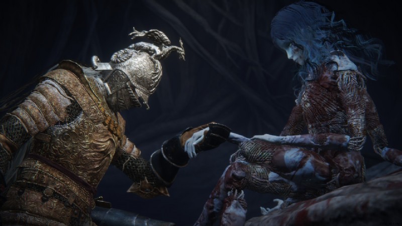 月光の祭壇と呼ばれるこのエリアに入る場所の北東 、マヌス セレス大聖堂に行き、グリントストーン ドラゴン アドゥラをスキップしてください。 ボス その近くにスポーンします。サイト オブ グレースのすぐ隣には、地面に大きな穴があります。 、降りてラニを見つけるカットシーンを開始し、ダークムーンリングを指に置いて彼女を生き返らせたようです.これでクエストラインの主な手順は完了です。この後、彼女の背後にあるダーク ムーン グレートソードを必ず掴んでください。