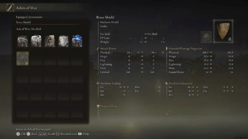 これらの組み合わせは、左手に盾を持ち、右手にダメージを与える武器を持っている場合にのみ機能します。大剣のようなものを使用することもできるので、大きなダメージを与えることができ、それから身を守ることもできます.幸いなことに、特定の盾はすでにスキルなしで提供されています。場合によっては、Ash of War を取り付ける必要さえありません。